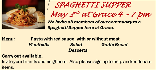Spaghetti Supper at Grace!