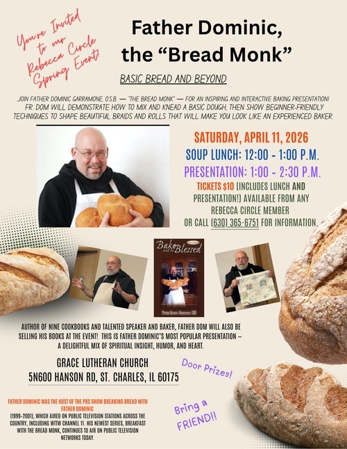 Join Father Dominic - "The Bread Monk" for an inspiring and interactive baking presentation. Dom will demonstrate how to mix and knead a basic dough, then show beginner-friendly techniques to shape beautiful braids and rolls.