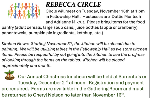Rebecca Circle meeting and news