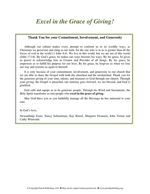 Starting Sunday October 24th, 2021, Grace Lutheran Church of Lily Lake is starting our new stewardship campaign! Join us in our journey and together we can excel in the grace of giving! We will be going through the program together, with each Sunday bringing something new!